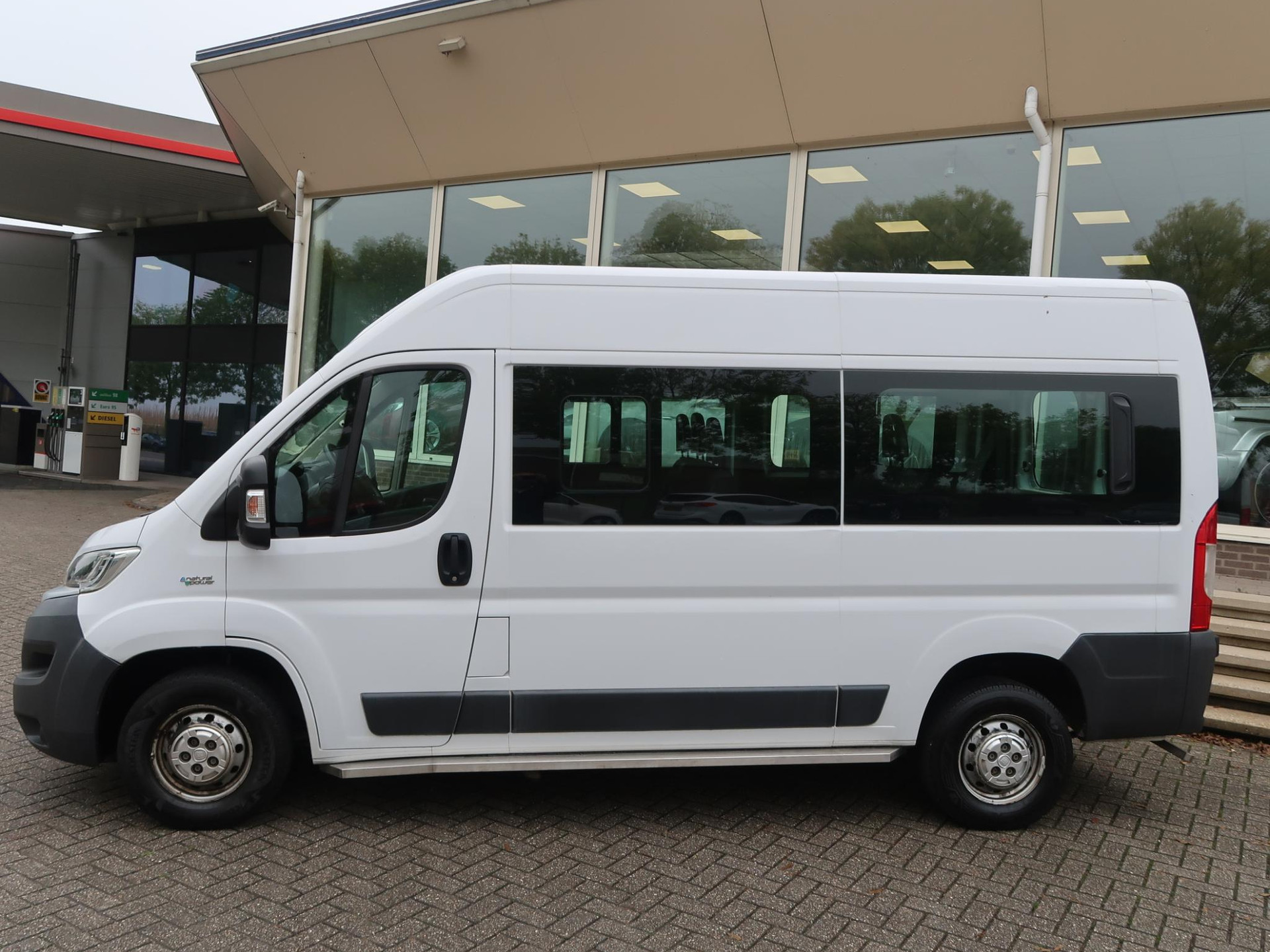 De prijs van 10.900 euro is exclusief 21% BTW, de auto is vrij van BPM. Inclusief BTW = 13.189 euro. Ducato personenbus 9-persoons Natural Power uitvoering met de 3.0 4-cilinder benzinemotor in combinatie met CNG Aardgas origineel vanaf fabriek, dus geen tank in de kofferruimte of op de plaats van het reservewiel. En zowel benzine als CNG brandstofmeter in de teller display, Airco, RVS achterbumper en zijdorpel bescherming, Armleuning bestuurder, Radio/CD, Automatisch uitschuivende opstap bij het openen van de schuifdeur, Hemelbekleding met verschillende verlichtingsunits.
