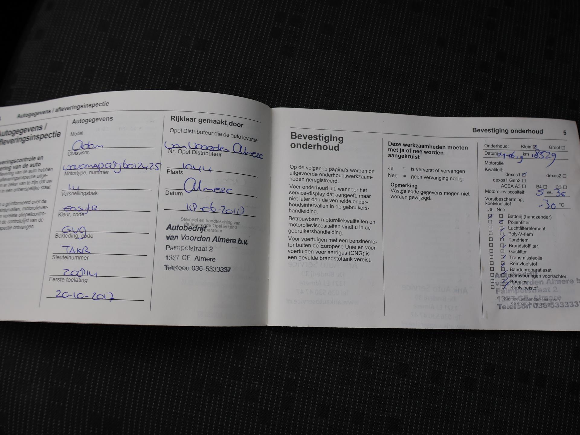 Origineel Nederlandse Opel Adam van 10-2017, 1.4 Unlimited Automaat, BTW verrekenbaar, Cruise control, Airco, Parkeersensoren, Bluetooth telefoonverbinding met audiostreaming, Onderhoudshistorie afgestempeld aanwezig.