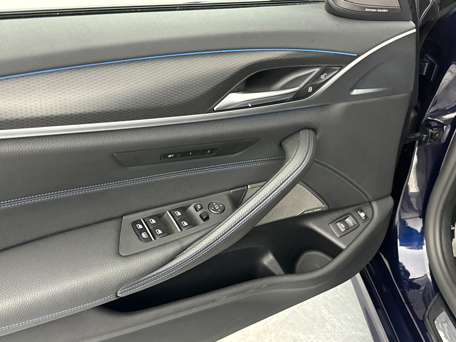 Interieurkleur: Leder Dakota Schwarz stiksel Blau/Schwarz