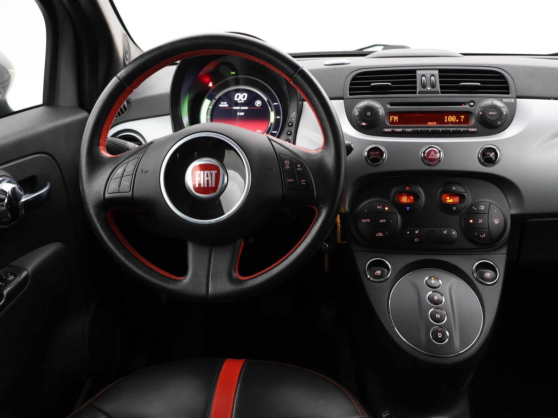 100% elektrische Fiat 500 24kwh automaat, Originele boekjes allemaal aanwezig, Mat zwart gewrapt, basiskleur is grijs, Elektrisch glazen schuif/kanteldak, Lederen sportstoelen zwart/rood met stoelverwarming, Cruise control met stuurwielbediening, Leder sportstuurwiel, Digitale cockpit / tellers, Climate control, Radio/CD met stuurwielbediening en USB/Aux aansluiting voor smartphone audio, Privacy glass, 230V thuislader voor een normaal stopcontact + laadpaal kabel, Grijze buitenspiegels, Audio stuurwielbediening, Achterspoiler, Zwarte hemelbekleding, Automatisch dimmende binnenspiegel, Elektrische ramen en spiegels, Boardcomputer, Bandenspanningscontrolesysteem, Blue & Me spraaksturing, Parkeersensoren.