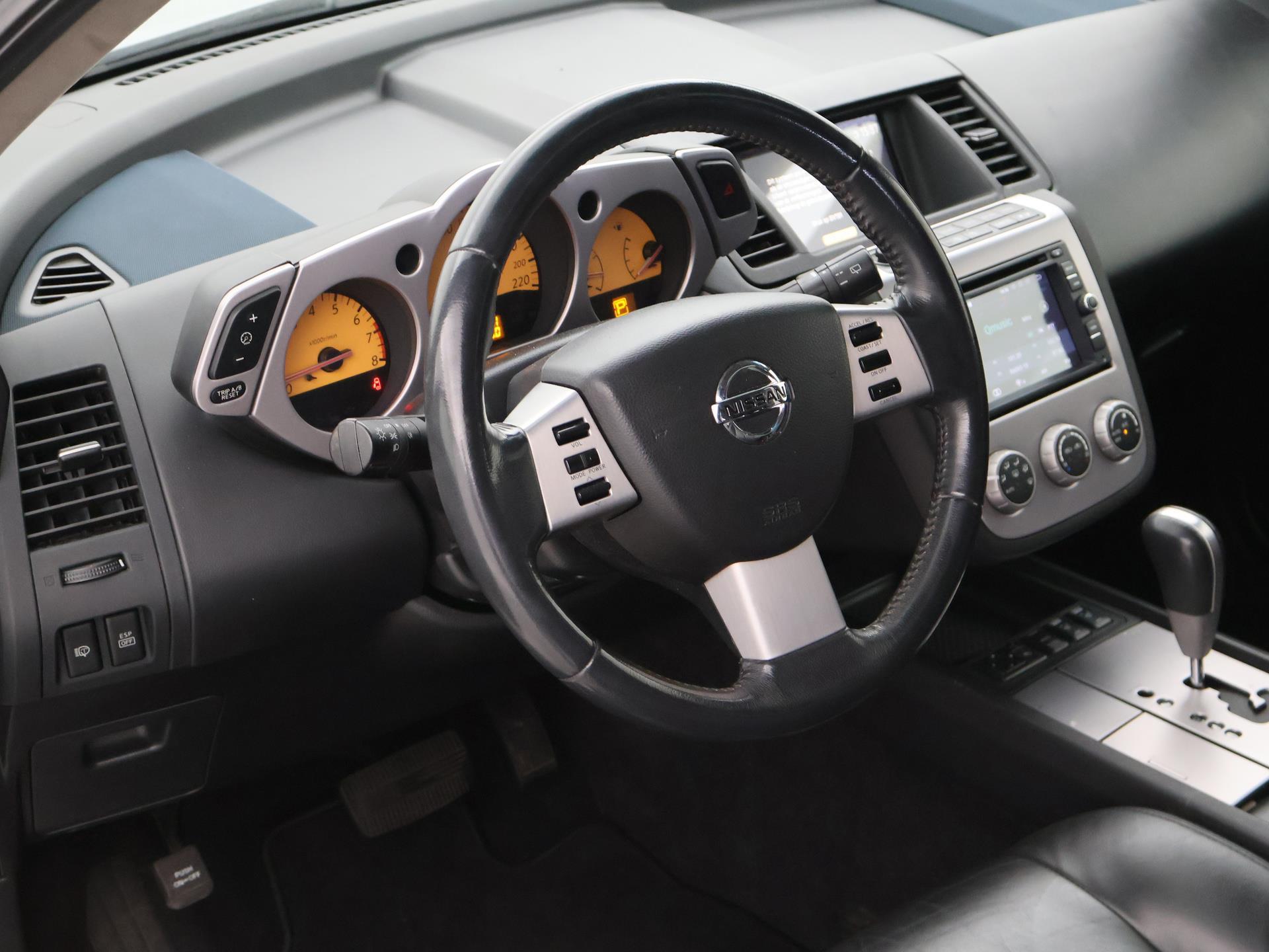 BTW auto, prijs is inclusief BTW, Youngtimer Nissan Murano van 2008 met de 3.5 V6 benzinemotor met 234 PK 4WD Automaat, Zwart leder interieur, Navigatie, Trekhaak afneembaar, Elektrische stoelverstelling met geheugen, Achteruitrijcamera, Bluetooth, Dubbele uitlaat, Privacy glass, Cruise control.