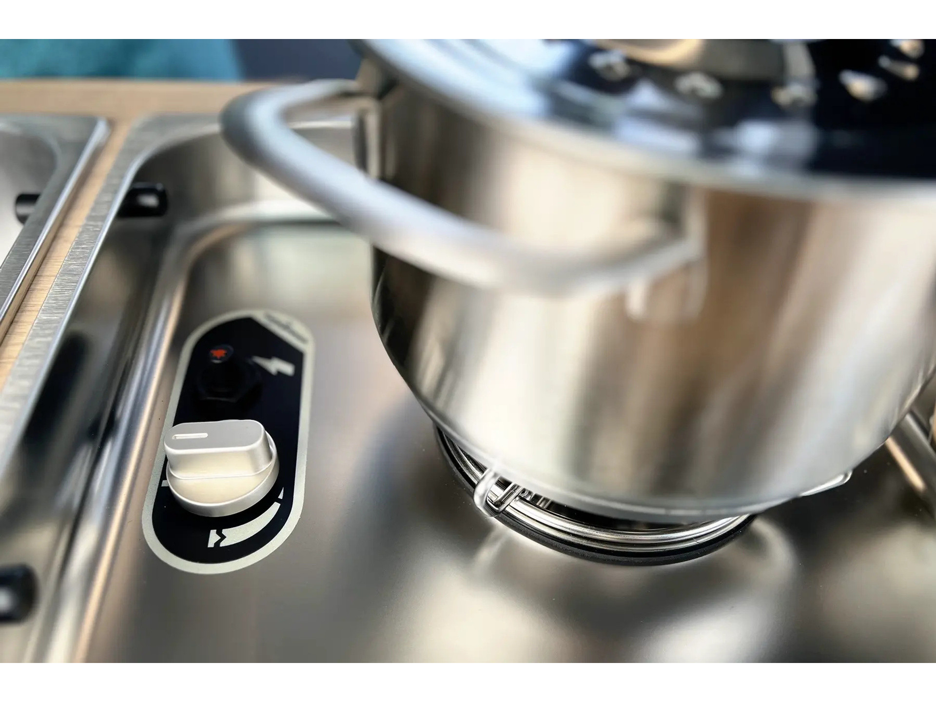 Keuken: Keuken toegankelijk via binnen en buiten, Ingebouwde spoelbak in rvs, 1-pits gaskookplaat, Koelkast (30 l), Accessoires inbegrepen