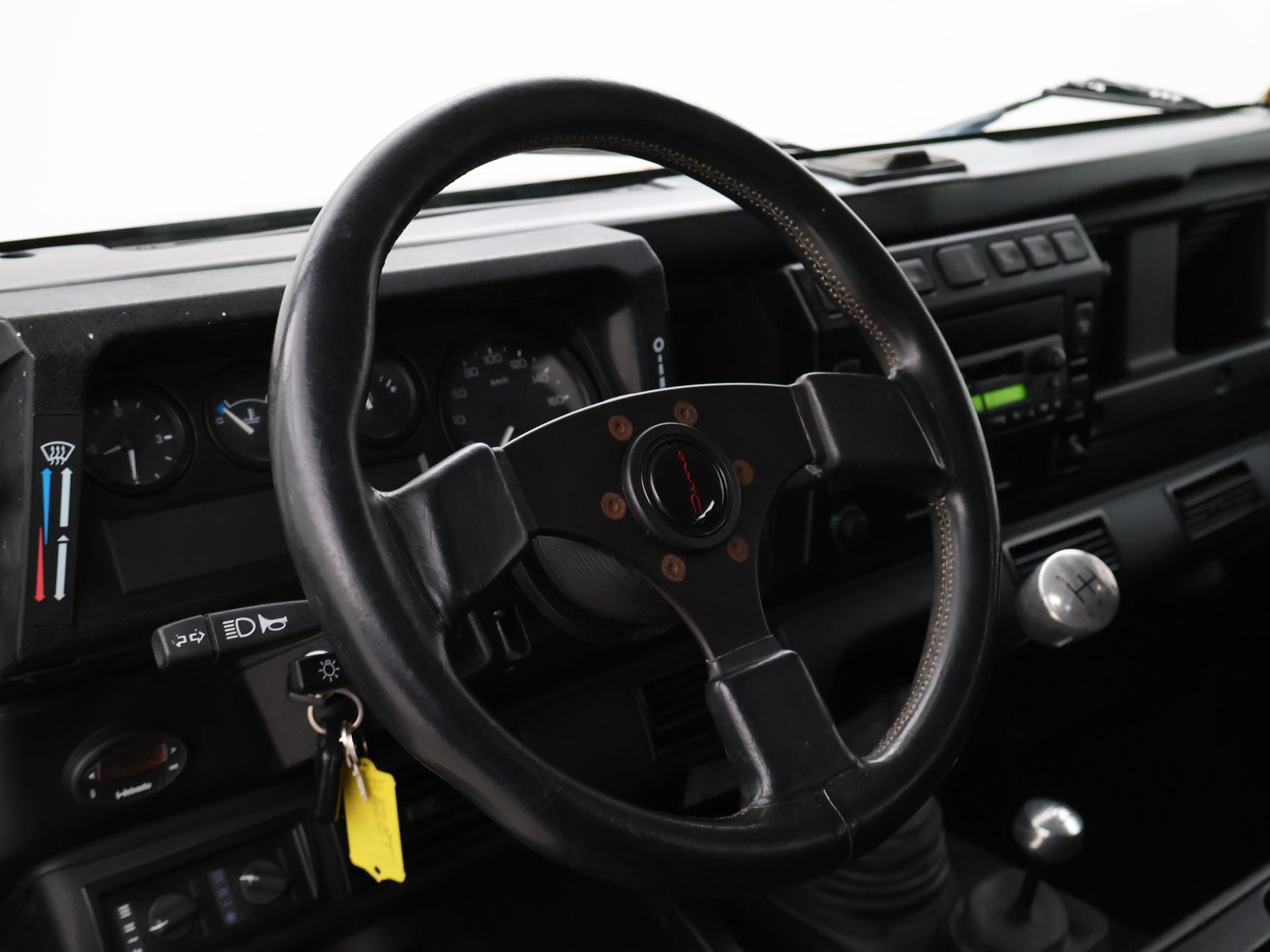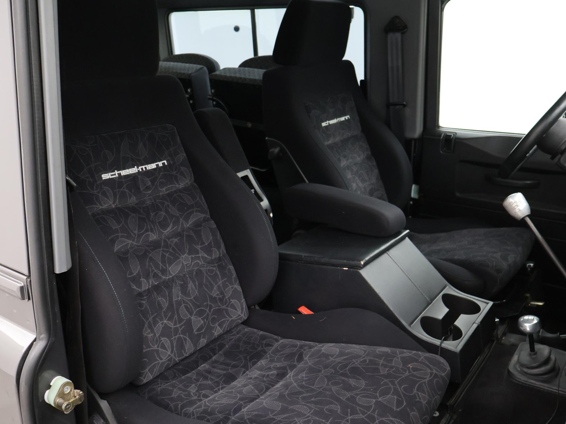 ​Defender 90" met 6 zitplaatsen dus geel kenteken, Donkergrijs metallic, Scheel-Mann sportstoelen voorin, ​Leder sportstuurwiel, Airco, ​Webasto Standkachel, Zwarte lichtmetalen velgen, Koplampbeschermers, Elektrische ramen, Aluminium pook voor de versnellingsbak en de tussenbak, ​2.5 TD5 5-cilinder 4X4.