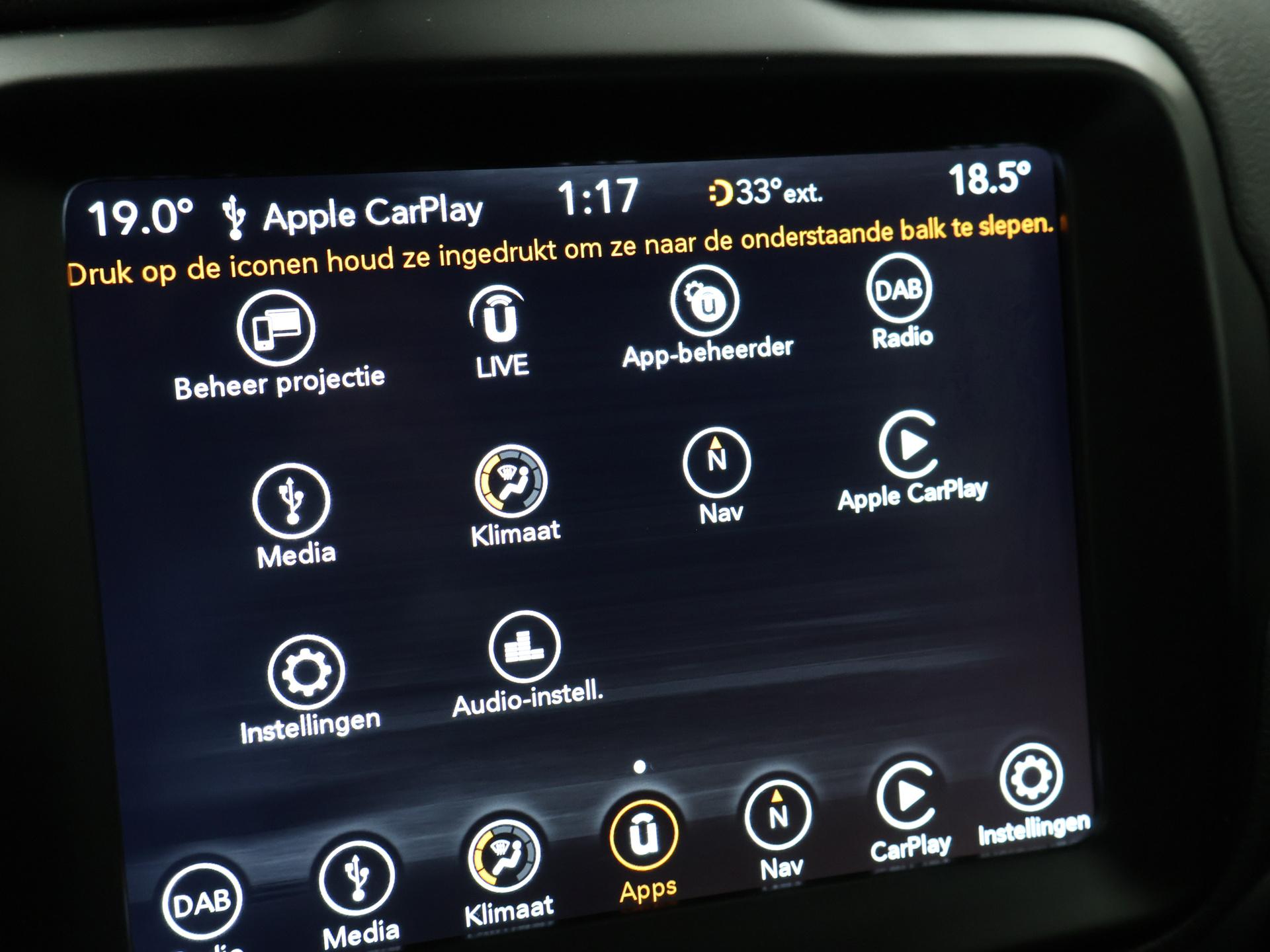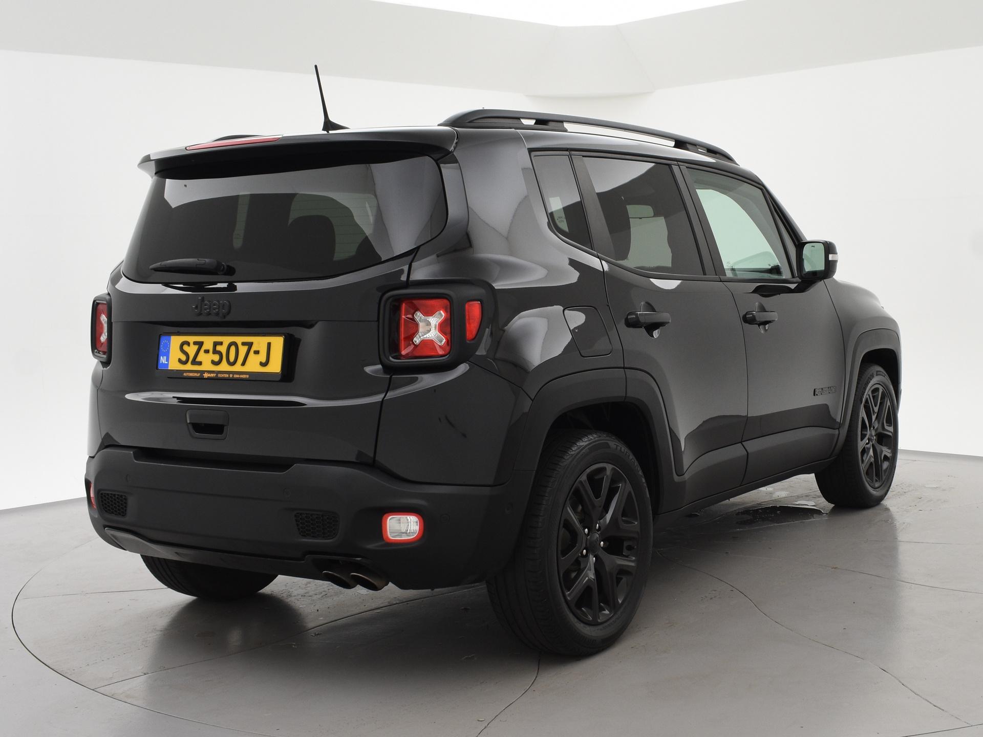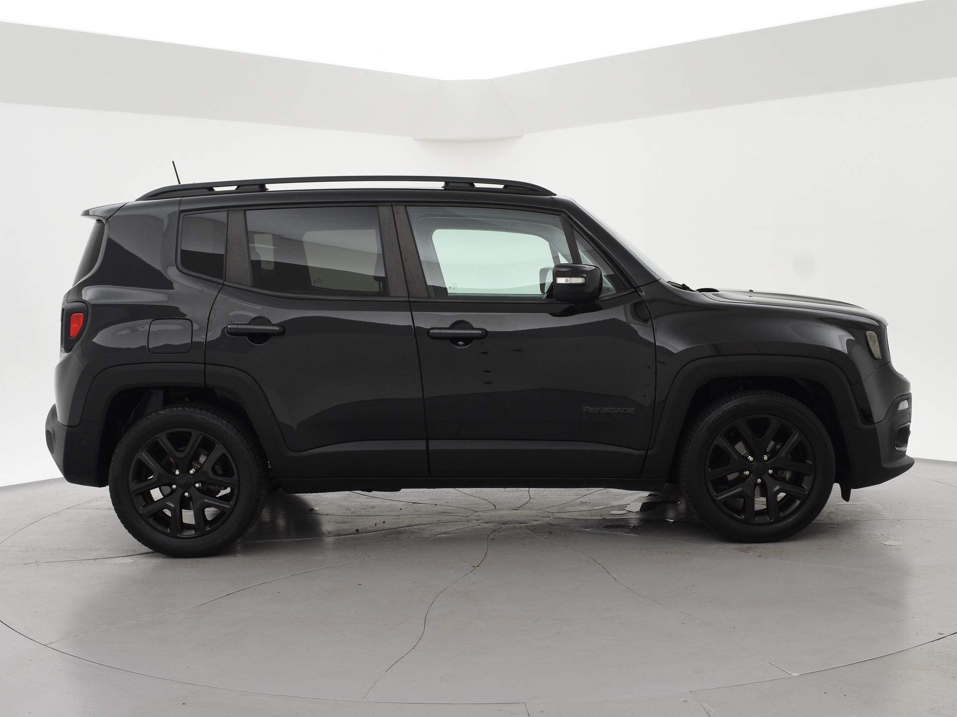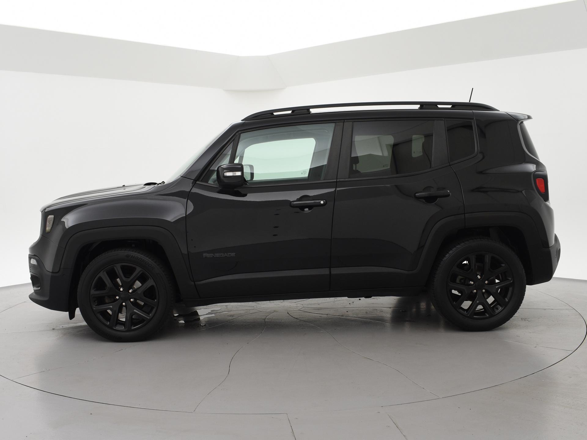 Origineel Nederlandse Renegade 1.4 MultiAir Turbo 140 PK Automaat, Night Eagle II Limited uitvoering in de kleur Carbon Black metallic met all black pack en zwarte 18 inch zwarte velgen, Privacy glass en zwart interieur. Adaptive cruise control, Apple Carplay / Android Auto appstreaming Google Maps, Flitsmeister, Spotify etc, Climate control, Leder stuurwiel multifunctioneel, Lijnassistentie, DAB+ digitale radio, Bluetooth met audiostreaming, Middenarmsteun.