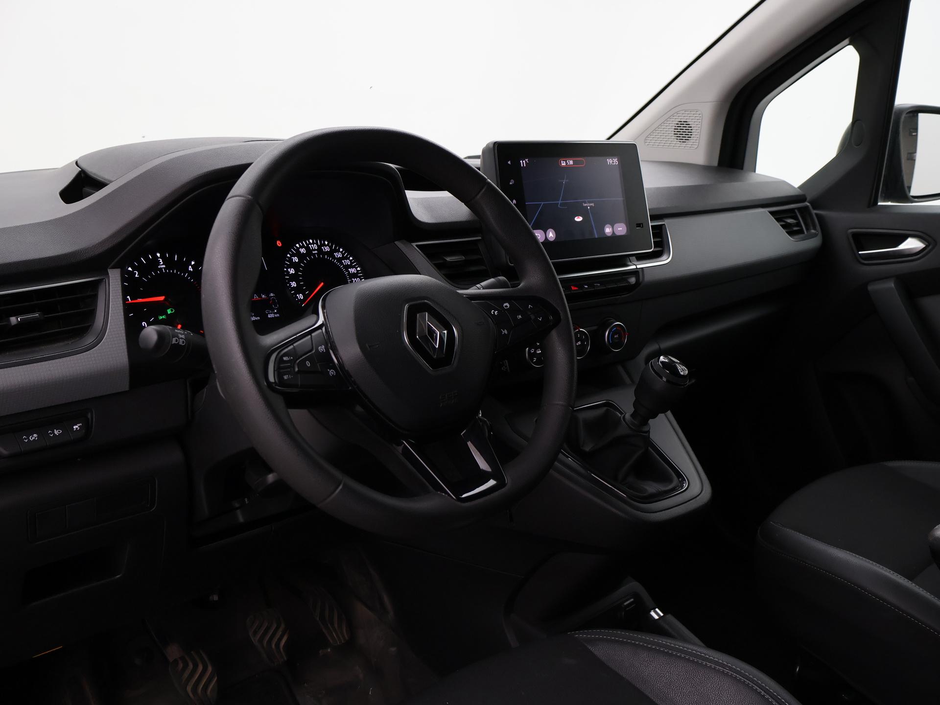 1.5 Blue DCI 95 PK in plaats van de standaard 75 PK motor, Comfort uitvoering met Navigatie, Achteruitrijcamera, Bluetooth telefoon met audiostreaming, Airco, LED dagrijverlichting, LED achterlichten, Cruise control, Houten laadvloer, Zijwandbescherming laadruimte, Zijschuifdeur, Audio stuurwielbediening, Zwart interieur met middenarmsteun, Verwarmde buitenspiegels, Prijs is exclusief BTW.